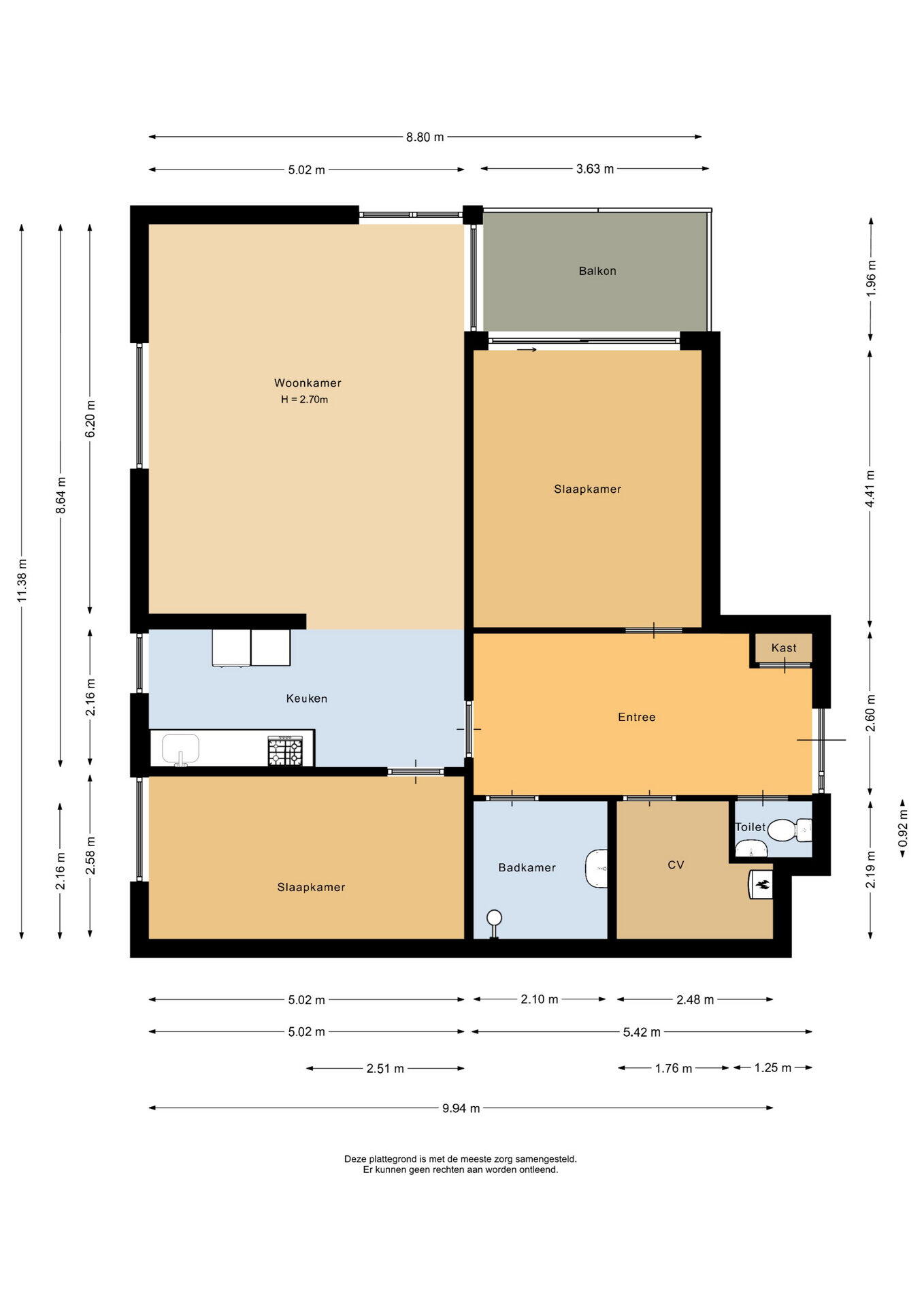 Entree, zeer royale hal met meterkast, videofooninstallatie, toilet met fonteintje, inpandige berging met cv-installatie (Ferroli), geiser, WTW- unit en aansluiting voor wasmachine en droger, lichte woonkamer met praktische deels open keuken met apparatuur zoals 5-pits gasfornuis, Siemens vaatwasser en oven. Het appartement heeft 2 slaapkamers, waarvan 1 kamer toegang geeft tot een ruim inpandig balkon met een schuifpui. Nette badkamer met wastafel en douche. De royale badkamer is voorzien van een douche, wastafel en radiator.
